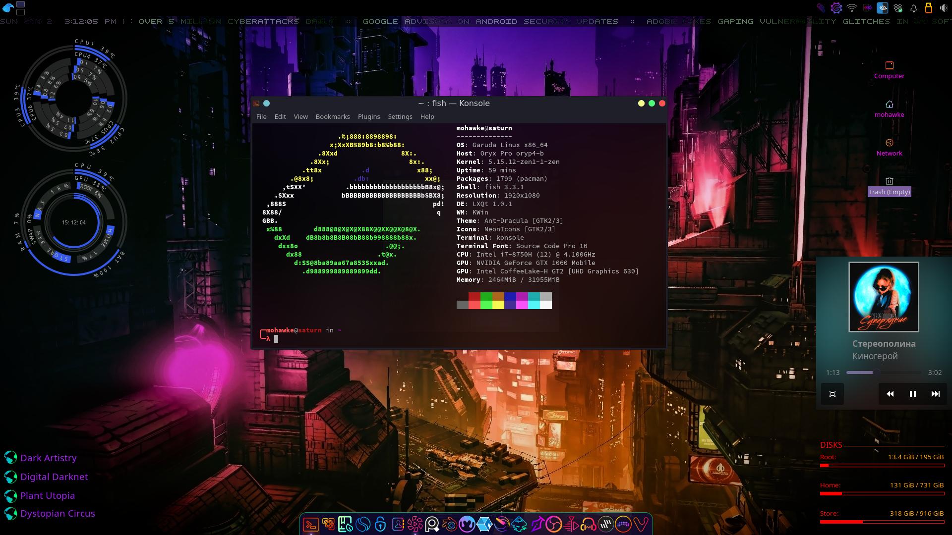 Update: Garuda Linux was a buggy mess! I had to go back to Manjaro, but wanted to keep that awesome cyberpunk neon theme.
