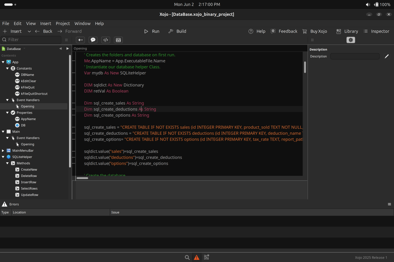 1. Create a new Xojo project and import this class (SQLiteHelper.xojo_binary_code). File, Import.