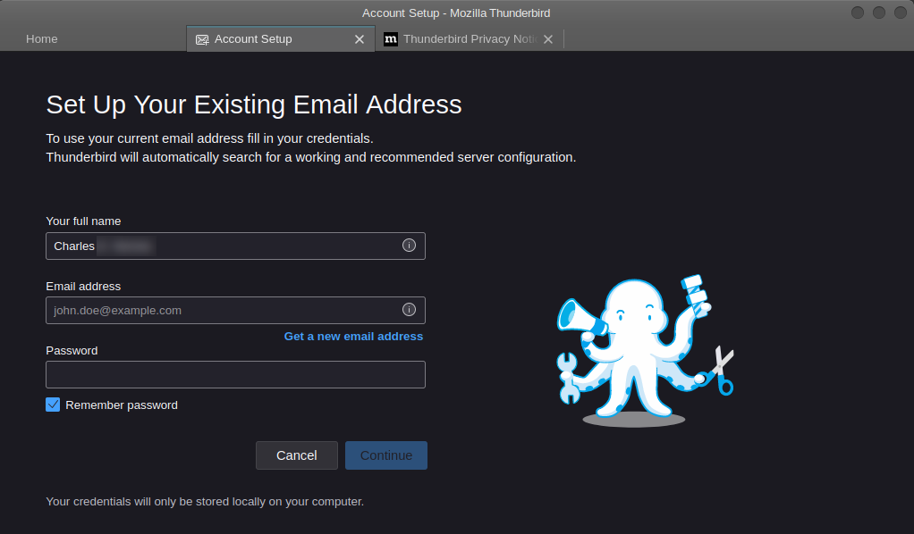 After downloading and unzipping I simply ran the Thunderbird executable. It runs fast and I had zero issues running on Linux. Loading of data is super fast too, actually faster than Evolution. However, unlike Evolution, having your Google account setup system wide did not automatically connect Thunderbird to the Google services. No worries, the setup worked so well is didn’t really matter.